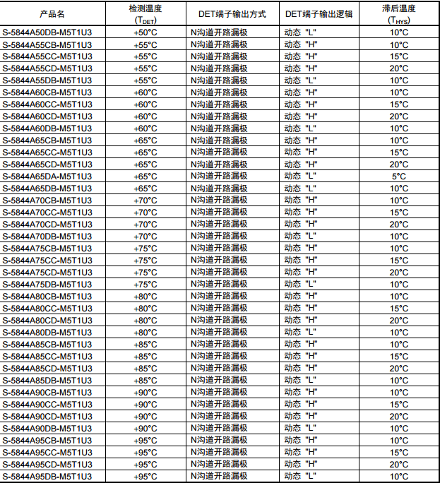 ? 檢測溫度 : TDET = +50°C ~+100°C、進(jìn)階單位為+5°C、檢測精度±2.5°C